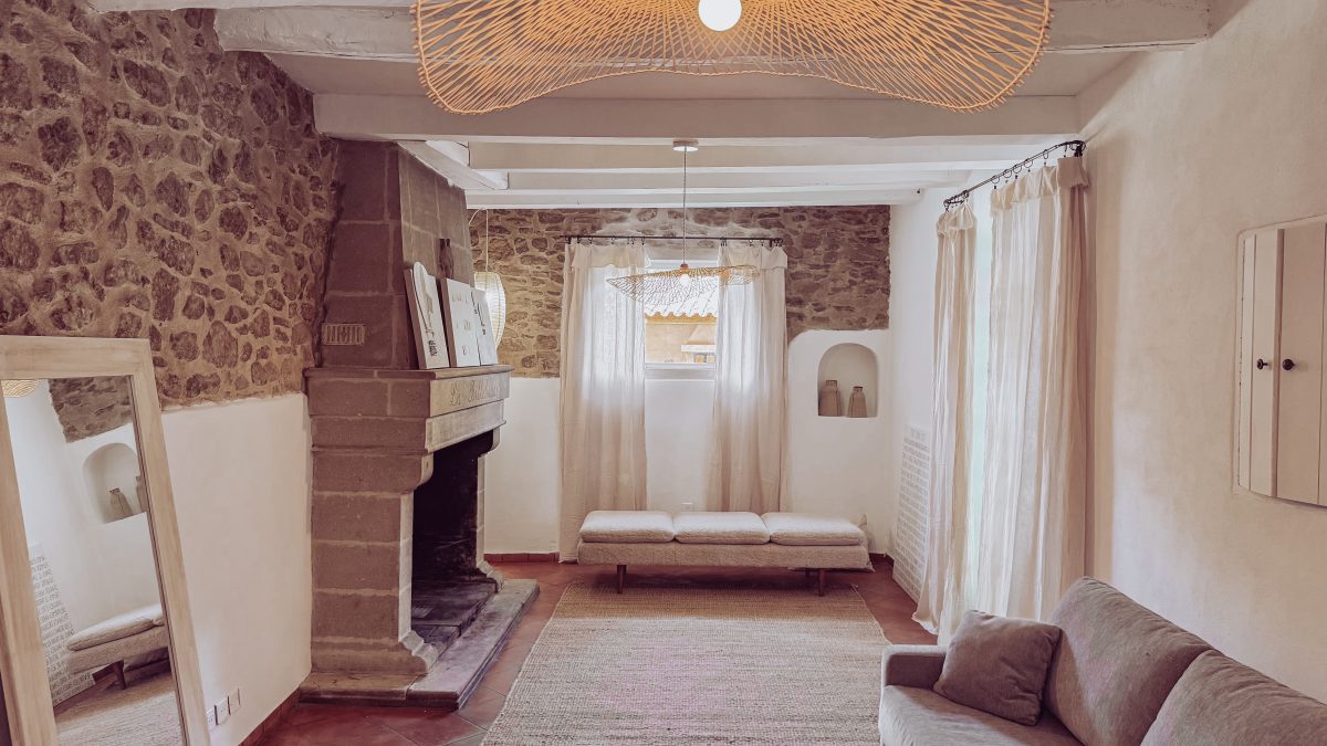 Au rez de chaussée de la maison principale, le salon dispose d’un canapé lit 140cm (confort couchage permanent).